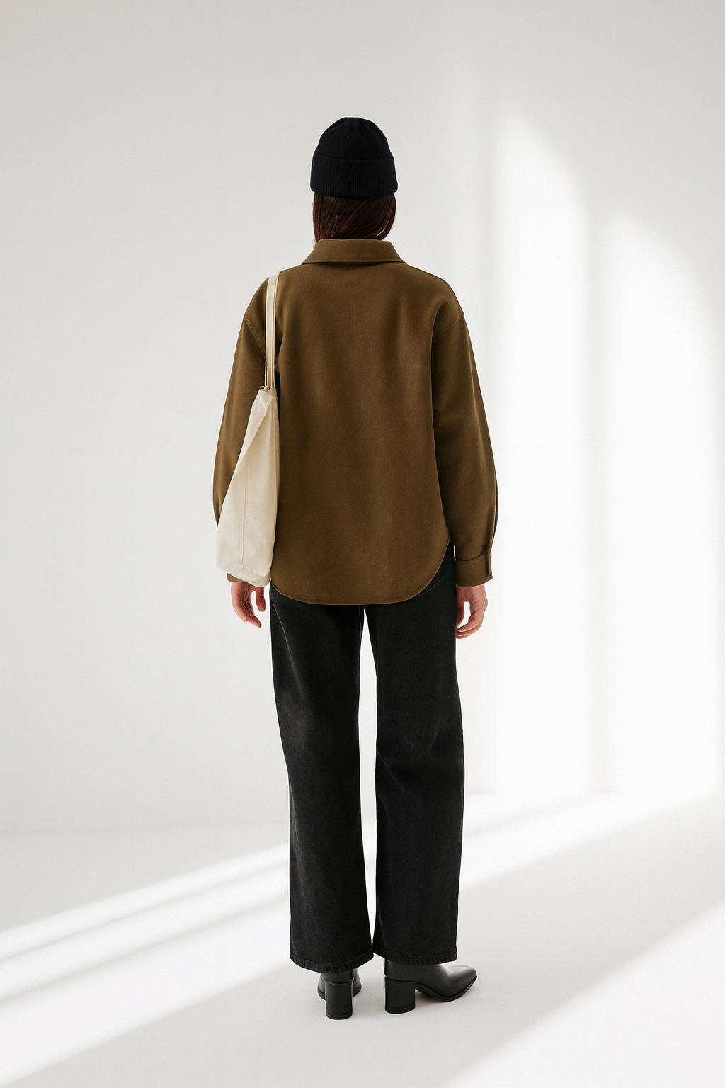 Women's Shacket Faux Suede Shirt Jacket - Elegant Button-Front Outerwear