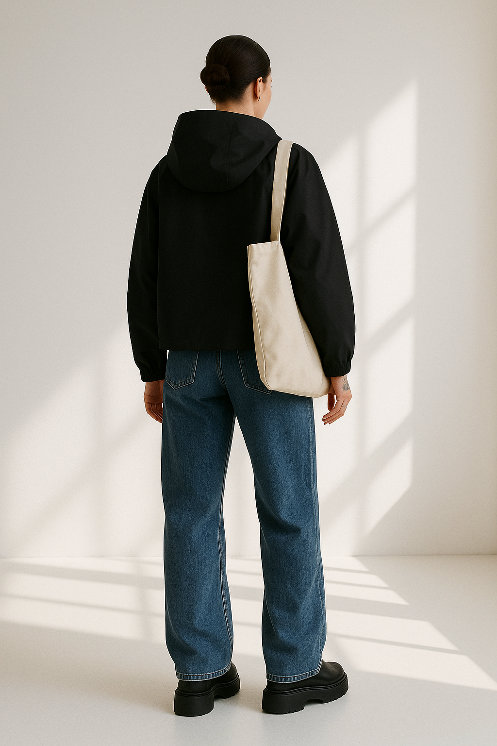 Sylvie Black Waterproof Cropped Women's Jacket - Hooded Loose Fit Spring Summer Fall